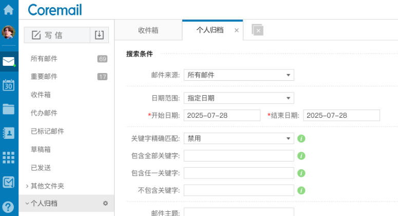 Coremail郵件歸檔模塊強大的搜索引擎,通過設置搜索條件,在海量數(shù)據(jù)中快速查找,精準定位到與之相關的郵件,保障數(shù)據(jù)易用性,提高審計員的審計效率。