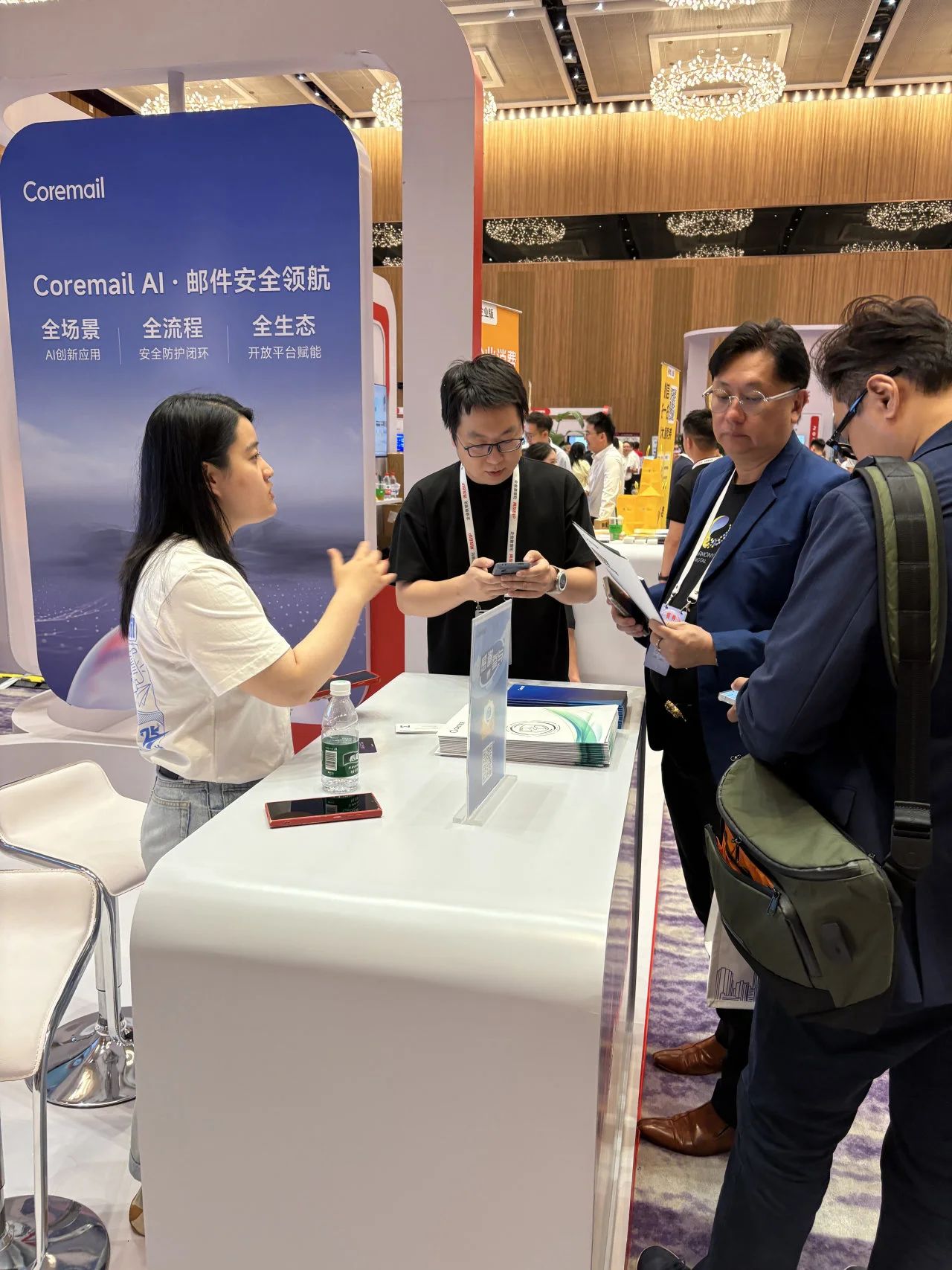 在生態(tài)展區(qū),Coremail精心布置的展臺吸引了眾多參會者駐足?,F(xiàn)場重點(diǎn)展示了其在AI賦能下的郵件及安全產(chǎn)品。