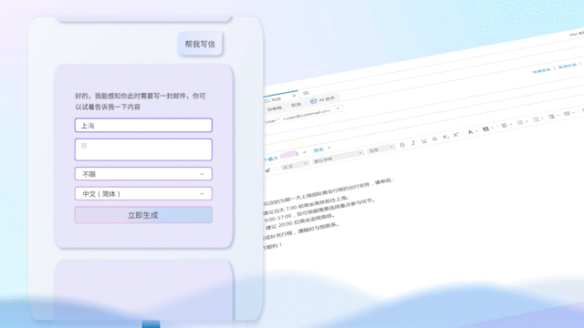 一句話輸入需求,AI助手摘取關(guān)鍵信息一鍵生成新郵件, 在回信場景中,還可通過分析上下文和用戶輸入提示,針對(duì)性回復(fù)。根據(jù)不同場合需要,用戶可使用改變語氣妥帖回復(fù)。續(xù)寫、擴(kuò)寫、縮寫、改寫,多種文章潤色能力為內(nèi)容錦上添花。