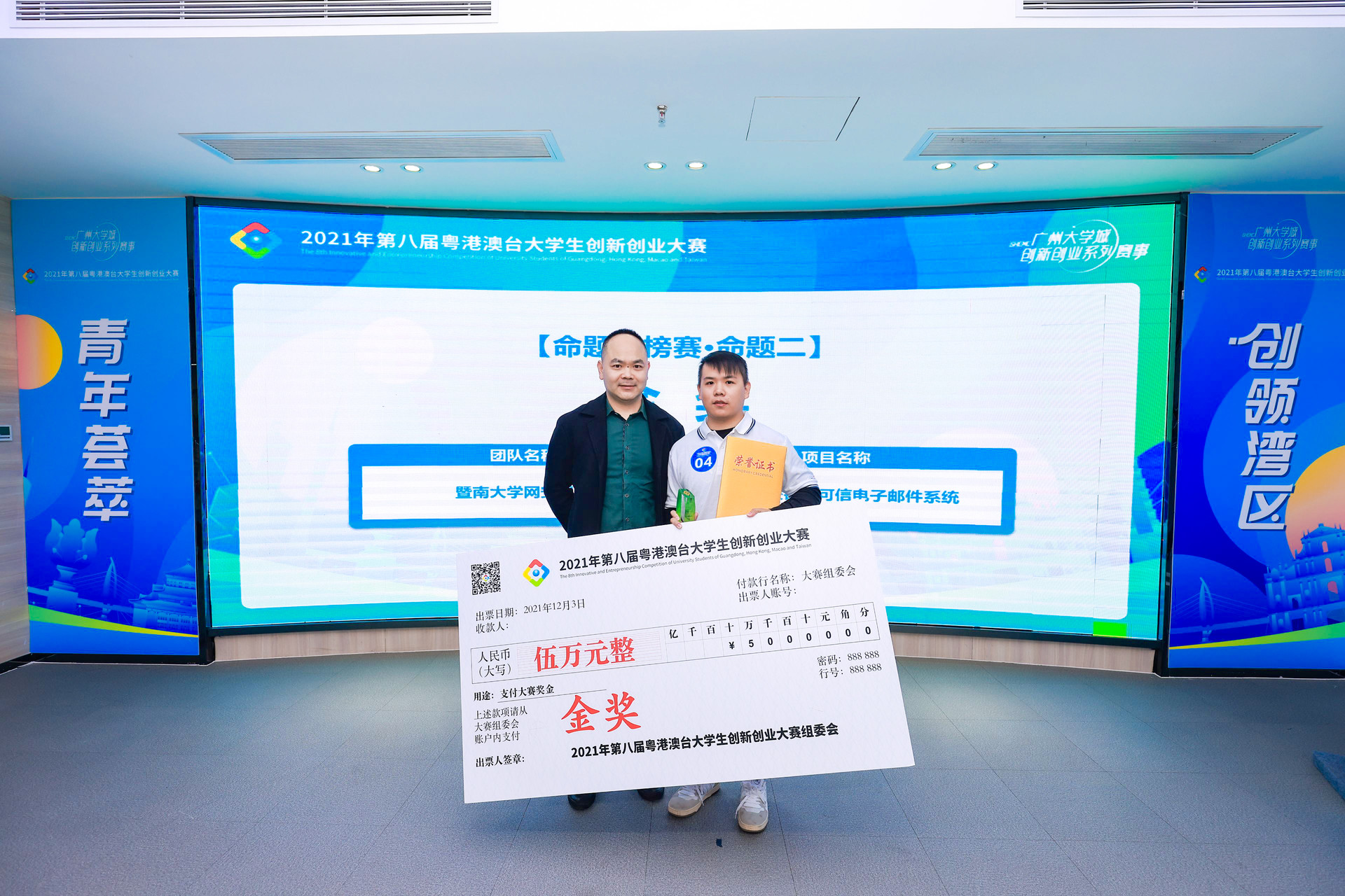 12月2日至3日,由廣東省科技廳、廣州市科技局、共青團(tuán)廣州市委指導(dǎo),番禺區(qū)委、區(qū)政府主辦,廣州大學(xué)城管委會(huì)和廣州市科技金融綜合服務(wù)中心承辦的“2021年第八屆粵港澳臺(tái)大學(xué)生創(chuàng)新創(chuàng)業(yè)大賽”順利收官。