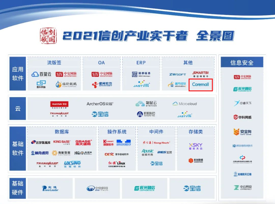 以下是2021信創(chuàng)產業(yè)實干者企業(yè)盤點結果,Coremail榜上有名: