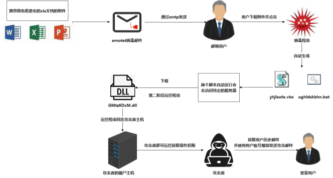 Emotet攻擊原理如下: