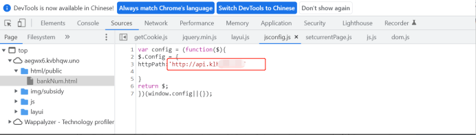 通過查看釣魚頁面的前端JS發(fā)現(xiàn)頁面調(diào)用api接口,域名為api.klh****.***,查詢api域名解析IP47.5*.*.***。
