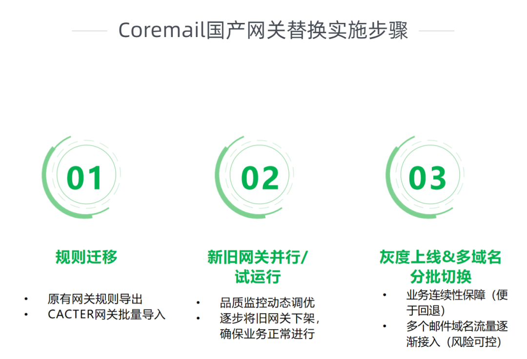 Coremail可結合該客戶具體情況量身定制CACTER網(wǎng)關替換上線方案。
