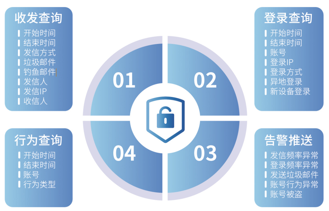 Coremail提供全面、多機(jī)制的保護(hù)策略,全方位保護(hù)郵件系統(tǒng)數(shù)據(jù)安全、信息安全,打造郵件安全生態(tài)體系。