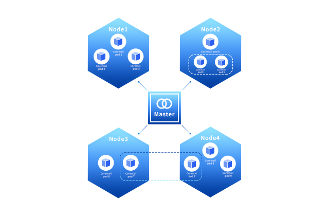 Coremail郵件系統(tǒng)率先支持在容器化平臺(tái)上部署,支持快速、輕便、靈活部署,對(duì)控制成本、保障服務(wù)穩(wěn)定性、提高工作效率上都有極大的優(yōu)勢(shì),同時(shí)滿足大型客戶和機(jī)構(gòu)對(duì)系統(tǒng)架構(gòu)的轉(zhuǎn)型要求。