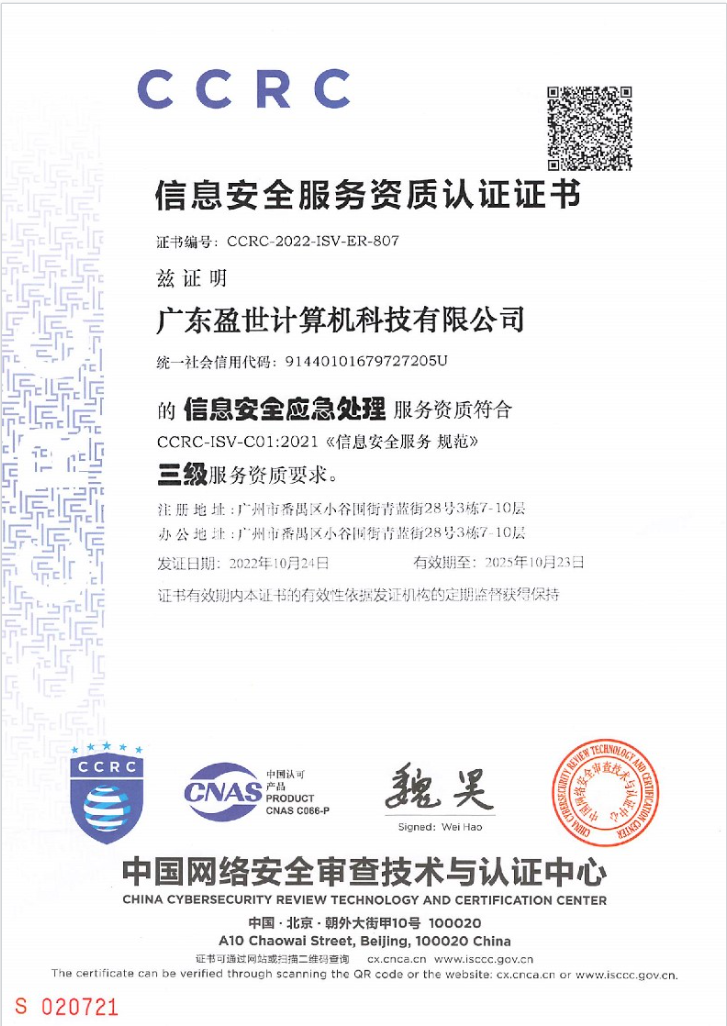 CCRC信息安全服務(wù)資質(zhì)認證