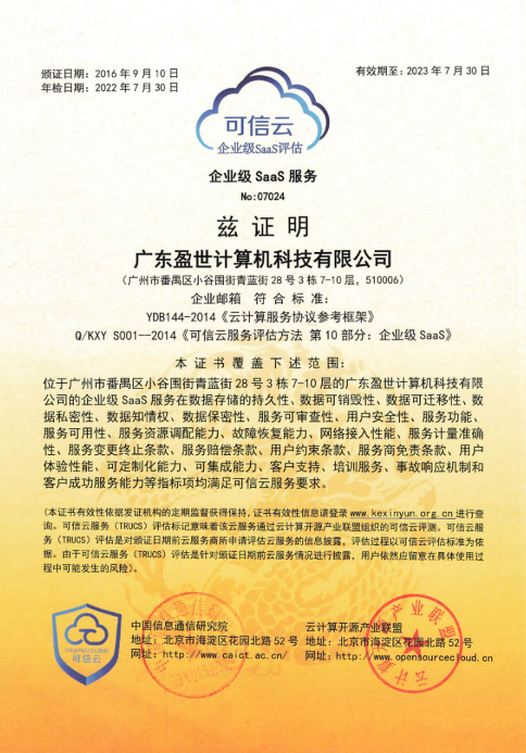 可信云認證是中國唯一的云計算權(quán)威認證體系,也是國際產(chǎn)業(yè)標準之一,它有著嚴格的評估標準,專業(yè)性強、門檻高,已成為衡量云服務(wù)技術(shù)能力和服務(wù)水平的重要標準??尚旁破髽I(yè)級SaaS服務(wù)評估從數(shù)據(jù)安全、服務(wù)質(zhì)量、運營能力、權(quán)益保障以及SaaS特有指標全面評估,幫助用戶洞察企業(yè)級SaaS服務(wù)。Coremail 2016初次通過該認證,多年來始終保持高水平運營,2022年7月無懸念通過年審。
