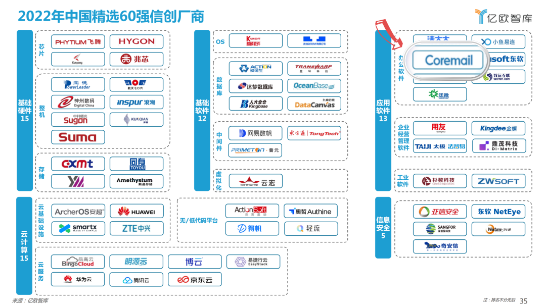 2022年12月,億歐智庫重磅發(fā)布《2022 中國信創(chuàng)產(chǎn)業(yè)競爭力研究報告及精選60強信創(chuàng)廠商》,對中國信創(chuàng)產(chǎn)業(yè)發(fā)展現(xiàn)狀、核心競爭力以及信創(chuàng)產(chǎn)業(yè)未來發(fā)展趨勢進行深度分析。Coremail憑借23年積累的技術(shù)優(yōu)勢和豐富的信創(chuàng)實踐經(jīng)驗,成功入選其“60強信創(chuàng)廠商”,也是本次唯一入選的郵件領(lǐng)域廠商。