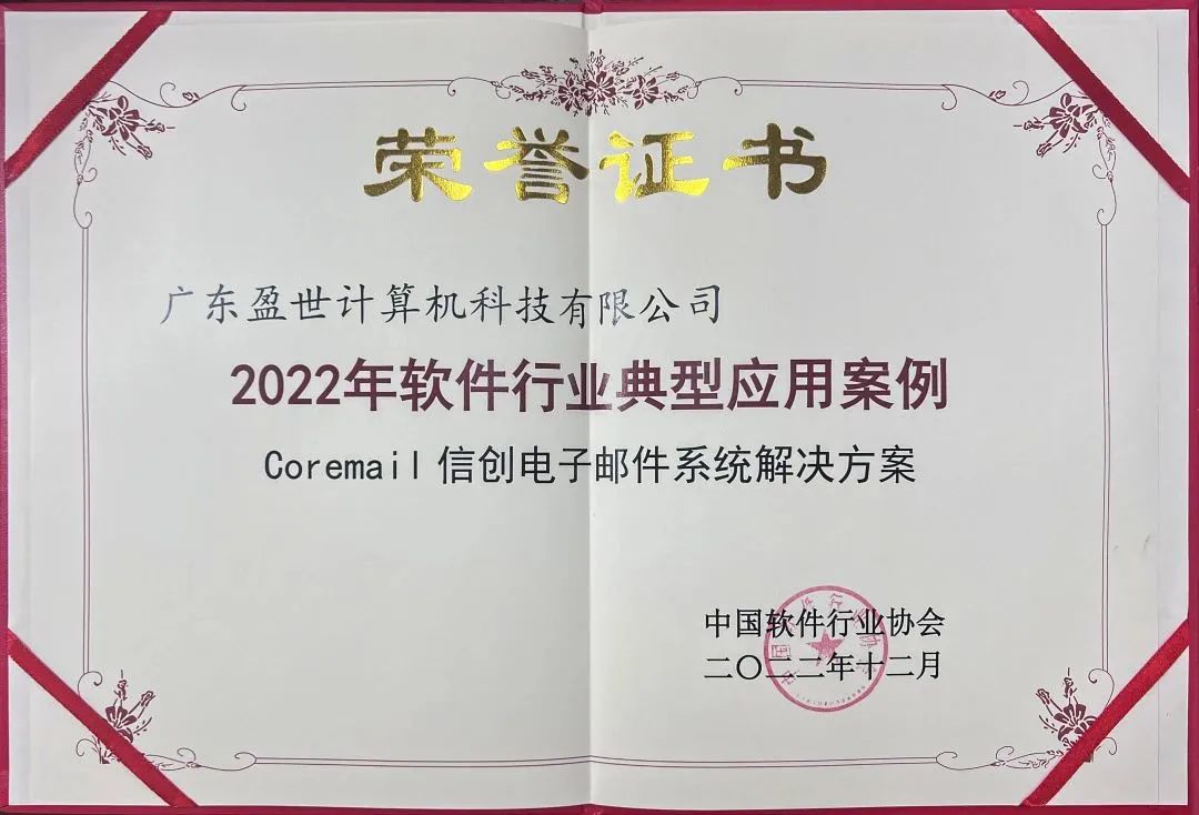 12月5日,由中國軟件行業(yè)協(xié)會聯(lián)合中軟國際有限公司、江蘇省軟件行業(yè)協(xié)會主辦的2022中國程序員節(jié)在江蘇南京圓滿落幕?;顒蝇F(xiàn)場公布了2022年軟件行業(yè)典型應(yīng)用案例,由廣東盈世計算機科技有限公司申報的Coremail信創(chuàng)電子郵件系統(tǒng)解決方案和Coremail郵件安全網(wǎng)關(guān)國產(chǎn)替換案例兩個方案成功入選。