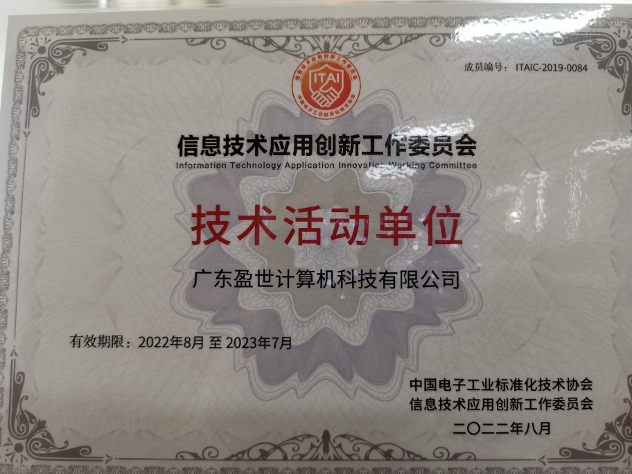 信息技術(shù)應(yīng)用創(chuàng)新工作委員會的“技術(shù)活動單位”證書,主要頒發(fā)給持續(xù)技術(shù)創(chuàng)新活躍度較高的信創(chuàng)工委會成員單位,是對堅持持續(xù)創(chuàng)新類會員單位的肯定。此次成為信創(chuàng)工委會“技術(shù)活動單位”是業(yè)界對廣東盈世計算機科技有限公司信創(chuàng)工作的肯定,也是對盈世發(fā)展前景與技術(shù)實力的高度認可。