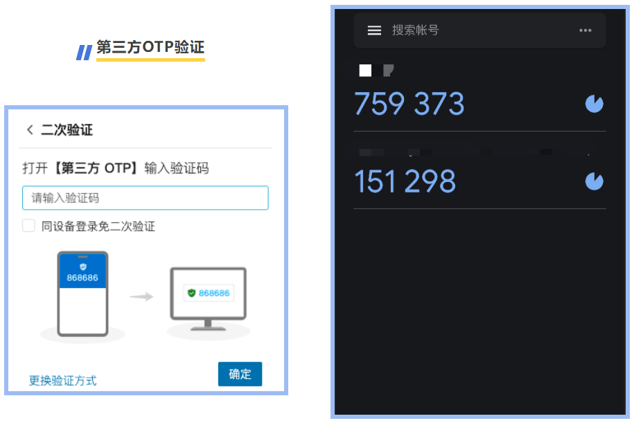 △驗證方式選擇“第三方OTP”,打開已綁定的第三方OTP并獲取驗證碼后,返回驗證界面輸入即完成驗證。