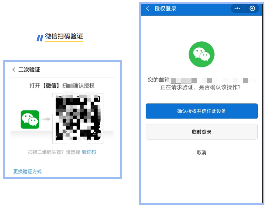 △登錄驗證時,用已綁定的微信掃碼即可完成驗證