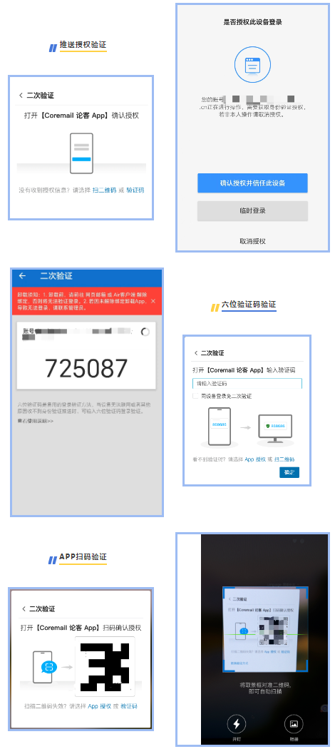 Coremail二次驗證2.0除了增加選擇綁定方式,還更多的考慮到用戶實用場景,針對性作出解決方案,給用戶帶來更極致的指尖辦公體驗。