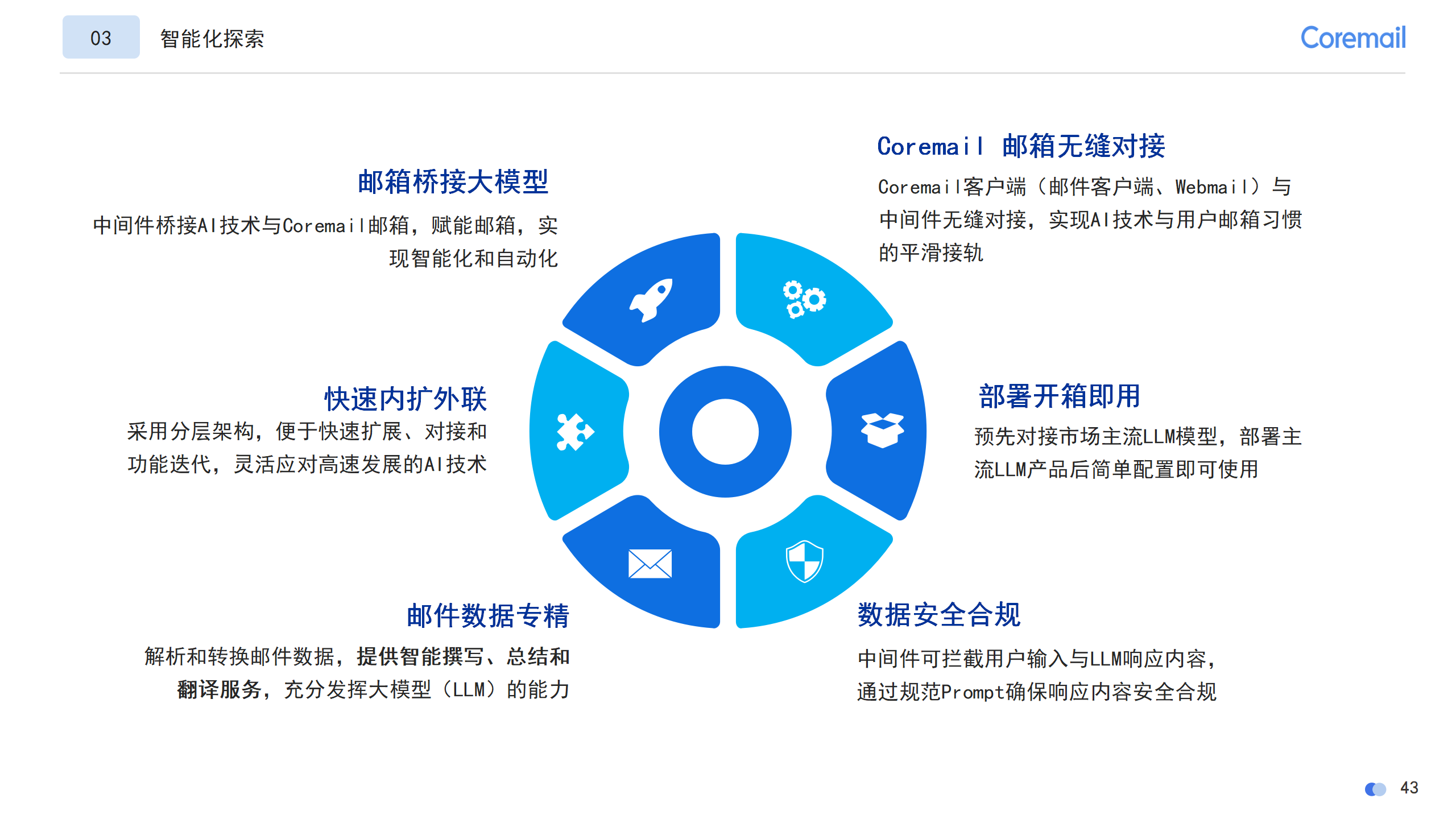 當(dāng)前,Coremail也在積極投入AI+郵箱的創(chuàng)新融合,以郵箱橋接大模型,賦能郵箱,實(shí)現(xiàn)智能化和自動(dòng)化。目前已覆蓋智能撰寫(xiě)、郵件總結(jié)、智能翻譯等多種郵件場(chǎng)景。