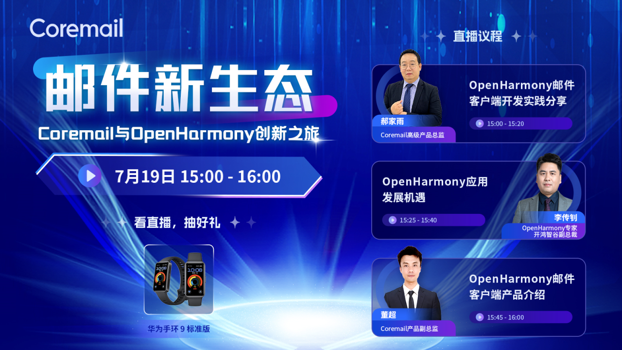 7月19日,“郵件新生態(tài) Coremail與OpenHarmony創(chuàng)新之旅”直播活動(dòng)舉辦,Coremail高級(jí)產(chǎn)品總監(jiān)郝家雨對(duì)話OpenHarmony專家、開(kāi)鴻智谷副總裁李傳釗,共探OpenHarmony應(yīng)用發(fā)展機(jī)遇,共享OpenHarmony郵件客戶端的開(kāi)發(fā)經(jīng)驗(yàn)與亮點(diǎn)。