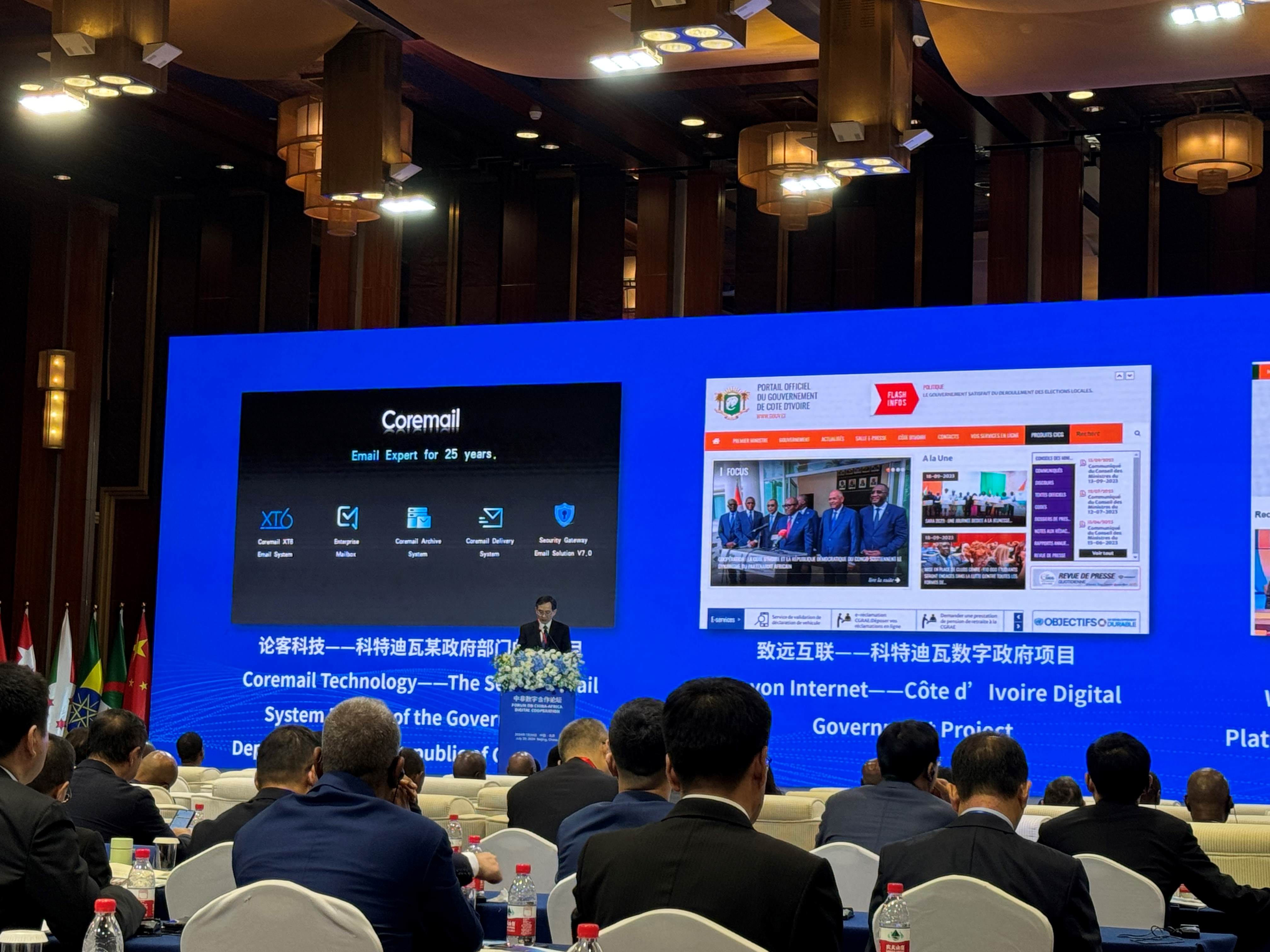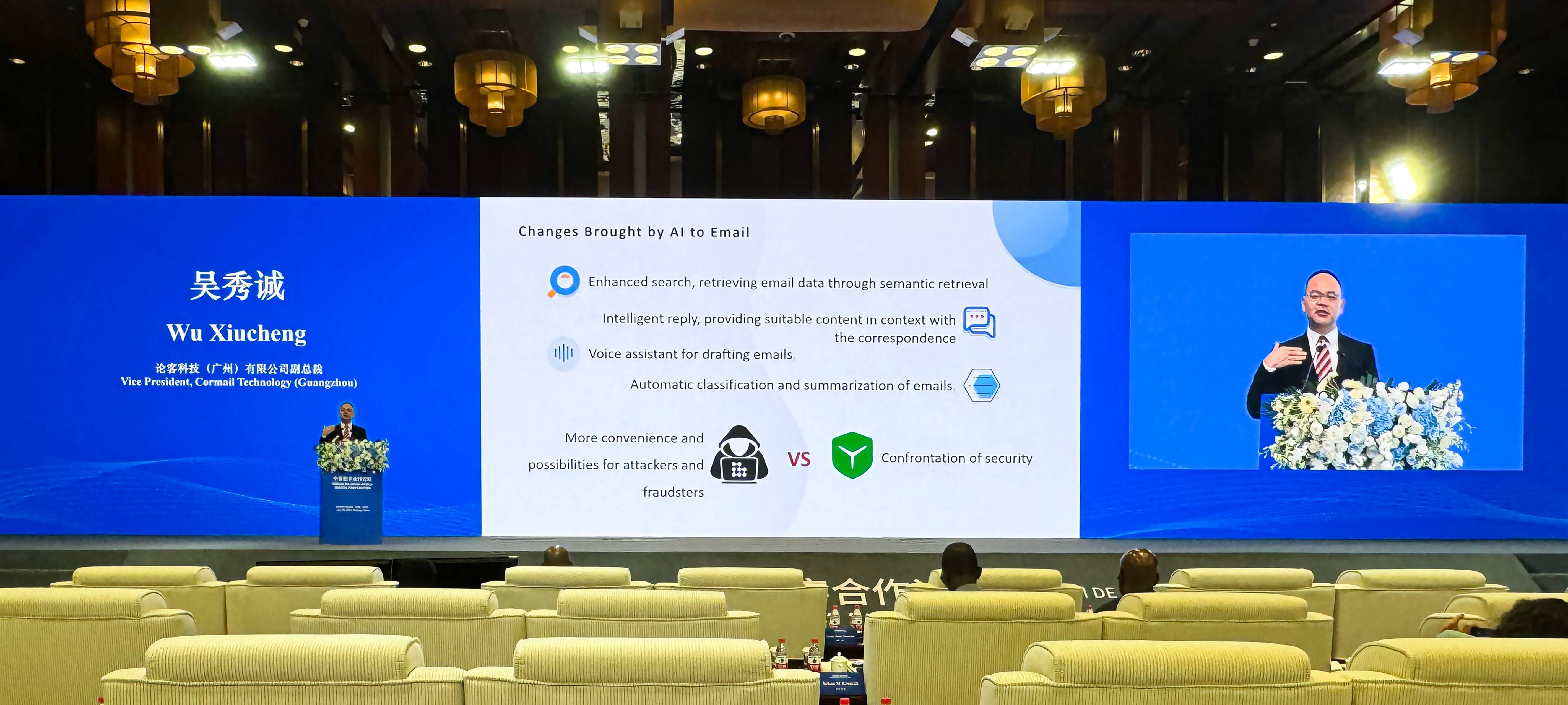 7月29日,由工業(yè)和信息化部主辦的中非數(shù)字合作論壇在北京舉辦,來自幾內(nèi)亞比紹、加蓬、塞拉利昂、索馬里、突尼斯等40余個非洲國家的數(shù)字部長和駐華大使出席論壇,相關(guān)國際組織和智庫的高級代表,中國外交部、商務部有關(guān)負責人以及有關(guān)企業(yè)、金融機構(gòu)代表參加活動。Coremail作為國內(nèi)郵件行業(yè)引領(lǐng)者,受邀出席并發(fā)表演講。
