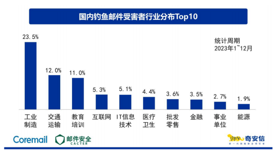 郵件安全向來是教育行業(yè)的一大痛點,由于教育行業(yè)的特殊性和重要性,國外勢力、黑產鏈條虎視眈眈,根據(jù)Coremail AI實驗室監(jiān)測分析,2023年度不論是收到的釣魚郵件數(shù)、垃圾郵件量,還是遭受到暴力破解攻擊的次數(shù),教育行業(yè)都居高不下。